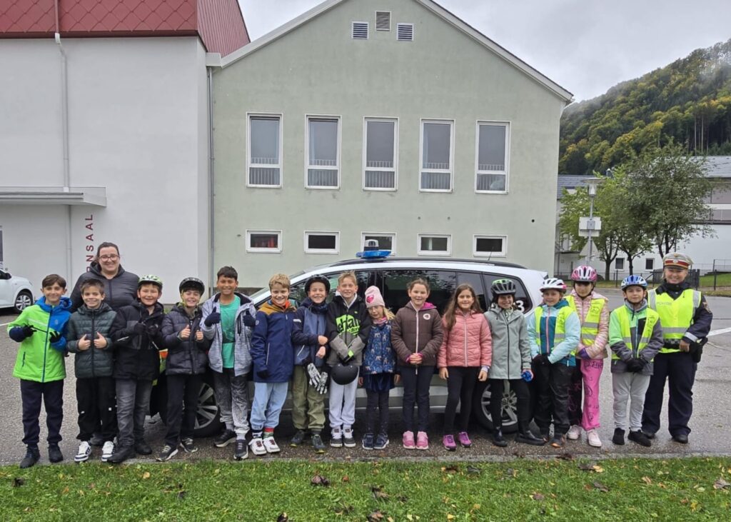 Bei nassem, kalten Herbstwetter fand dieses Jahr die freiwillige Radfahrprüfung statt. Die Schülerinnen und Schüler der vierten Klassen nahmen das Wetter sehr gelassen und absolvierten die Prüfung mit Bravour. Unsere Schulpolizistin Corina Grieshofer verteilte gleich im Anschluss die Fahrradausweise an die stolzen Kinder! Herzlichen Glückwunsch!